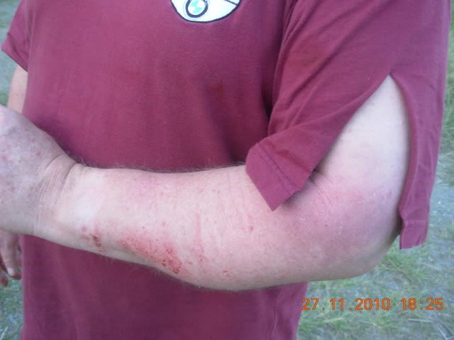 bugger all damage here - the top of my head is one of the few places un-bruised!