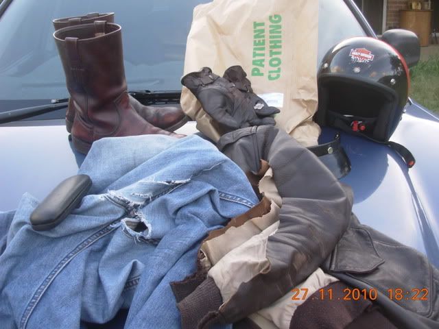 They will then assess and destroy my stuff. I asked for my helmet back as a trophy (it'd look better on my bar than in their bin!) but nooooo coz I might sell it on at some stage... that being the case I'll try to save the battered front fender and convert it into a lamp shade!