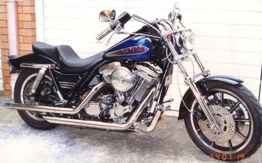 Im Wazza from Newcastle. Finally decided to take the plunge and expose myself on the web. Im an older guy whose been riding and tinkering with bikes since the late 70s. My current ride is a 1990 FXR Lowrider Sport that has just received its second makeover since i bought it in 96. I call it Night Rider. No more problems with chrome. Let me know if you think its gone from an ugly duck to a black swan. Here are the before and after pics. Cheers.