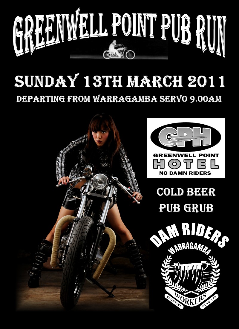 No worries ....... Myself and a few others wont be leaving from Warragamba Sunday morning as we are staying at Sanctuary Point Saturday night and meeting up for lunch at Greenwell Point. Will be riding home via Kangaroo Valley , Colo Vale , Buxton , Thirlmere. Will post details of the ride down when I know for sure , I think they will be going down via The Oaks , Picton , Picton Road , Ousley , down the coast to Nowra.