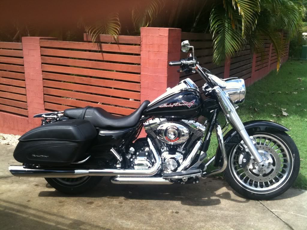 2009 FLHR, Vance and Hines True Duals and Twin Rounds, lowered HD suspension, Heritage Style Bars, Street Glide rear filler panel and tri bar brake and tail light plus other bits and peices too numerious to mention, bike will be sold with the Hard bags on it, not the Road King Custom bags on it now or the number plate. Asking $27,800.00 but open to serious offers.