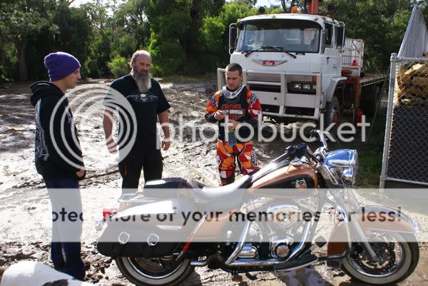 ...should be in WTF section...man alive he was lucky he didn't have 300 odd kilos of angry roadking fall on his head...good luck to him, i think he will need it