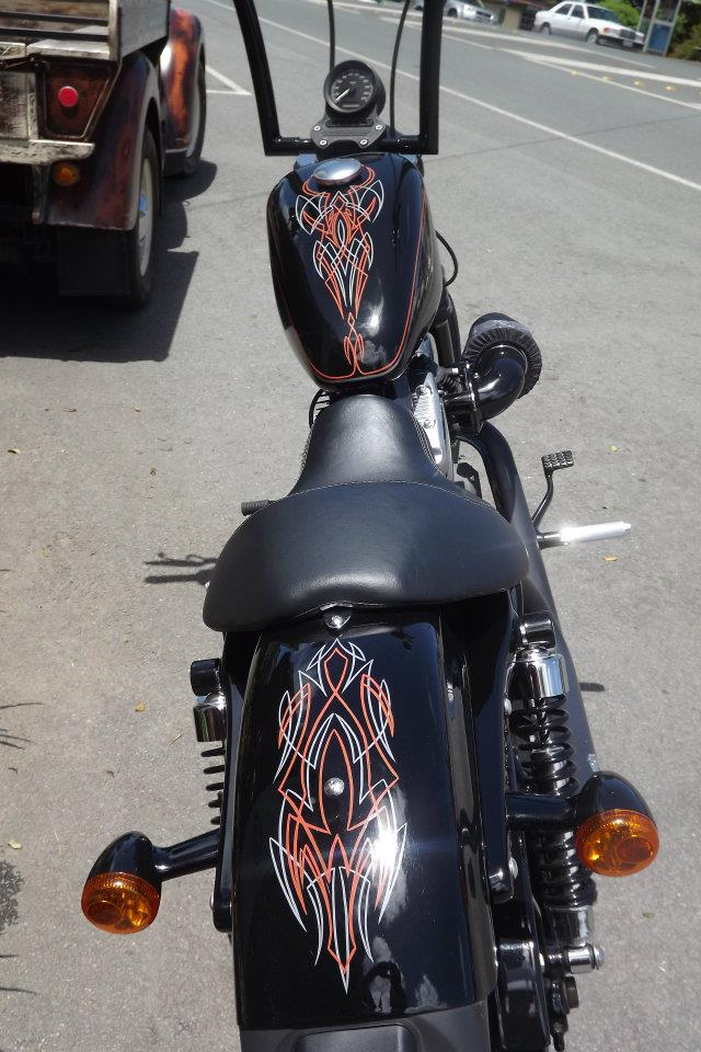 Hi Harley fans. I'm Vick, i specialise in Custom artwork, Airbrushing, Pinstriping, Hand lettering, gold leaf, portraits(of you or your ride), murals and Custom paint jobs including Metal flakes, Candy and flats. Whilst I do paint my share of Harleys I pretty much will paint anything you want on anything you got. I am based on the Sunshine Coast in Qld. I have attached a very small cross section of samples of my work (on Harleys) for you all to check out. Heaps more where they came from just didn't want to bore you all too much in my first post If you think i might be able to help you with any of your custom paint needs give me a shout. look forward to meeting you when you do. cheers vick