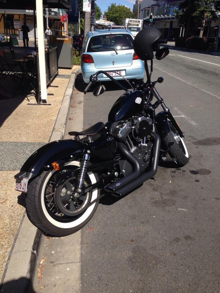 G'day. Bought my first Harley a few months back and thought it was time to join up, not just creep around as a guest! The details: 2013 Sportster Forty-Eight Custom Tank Stage 1 kit (Breather, V&H Short Shots, Tuner) Bars & Braided Lines White Walls Springer Seat