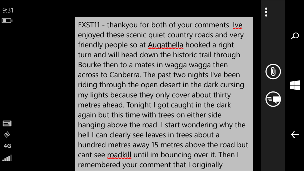 Great write up Rob. Inspirational -- especially the pics from the middle of nowhere. I reckon you will like the roads in and around the ACT. There is also a good biking community here and it's very much a bike-friendly town WRT parking, usually reasonable coppers, and the lane filtering trial.