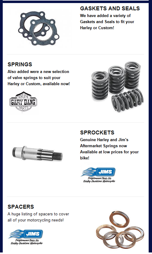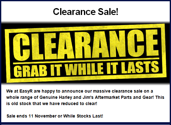 We're having a clearance sale on a bunch of Jim's and Genuine parts that we have in stock.